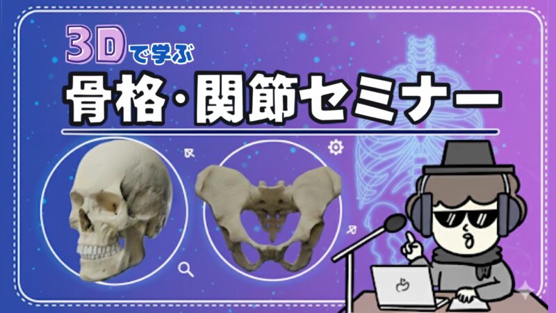 解剖学の骨格・関節について3Dイラストと3D映像を使ってイメージしながら覚えられるセミナーを作成しました。