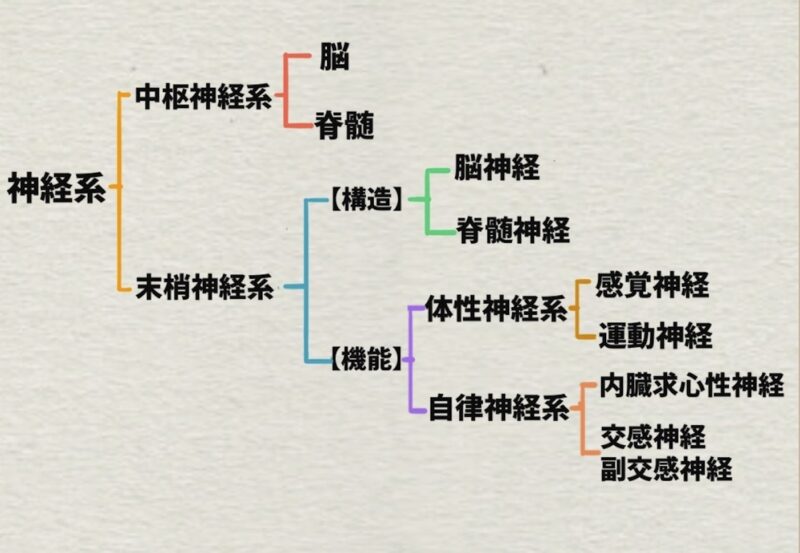 - さらに末梢神経を「機能」で分ける(体性神経系/自律神経系)