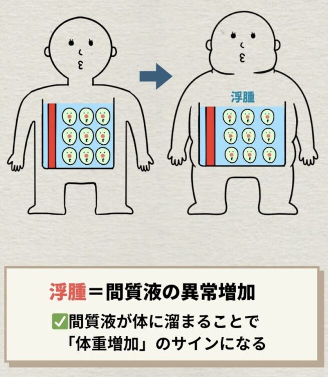 - 脂肪が増えていないのに体重が急に増える